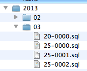 If you have a lot of developers making changes to the schema it can be helpful to include your initials in the filename (2013/03/25-0001.smk.sql) so you don't have to deal with a lot of problems related to duplicate filenames when you pull down changes.